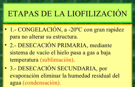 se llama liofilizacion o criodesecacion es la deshidratacion al vació. es uno de los métodos mas modernos. se trata de una descongelacion rápida seguida de una sublimación del hielo realizada bajo vació, en presencia de frió y en ocasiones de secante