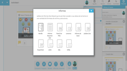 Informar es una excelente manera de ver lo que está pasando en tu tormenta, sin tener que contar los votos, mirar los comentarios o determinar qué ideas llegaron a la cima . Encontrarás el botón “Información ” en el menú en la parte inferior de la pantalla. Experimenta con los distintos tipos de informes para ver cuáles son los más apropiados para ti.