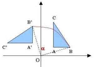 Caption: : En la rotación se da el giro con base en un ángulo de rotación.