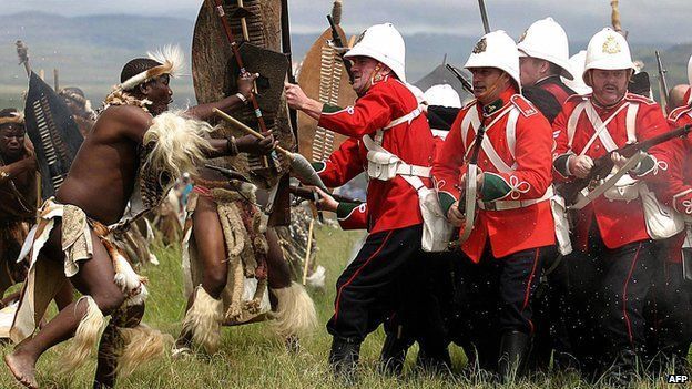 Hay una batalla entre zulúes e ingleses, al principio los ingleses están intimidados con los cantos de guerra que tienen los zulúes pero luego ellos se animan entre sí cantando. Cuando la batalla comienza, los zulúes ganan pero una vez se atrincheran los ingleses y gracias a las armas que tienen y a la coordinación consiguen vencerlos a todos.