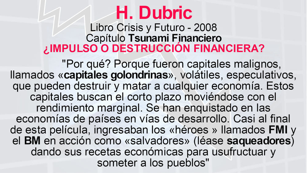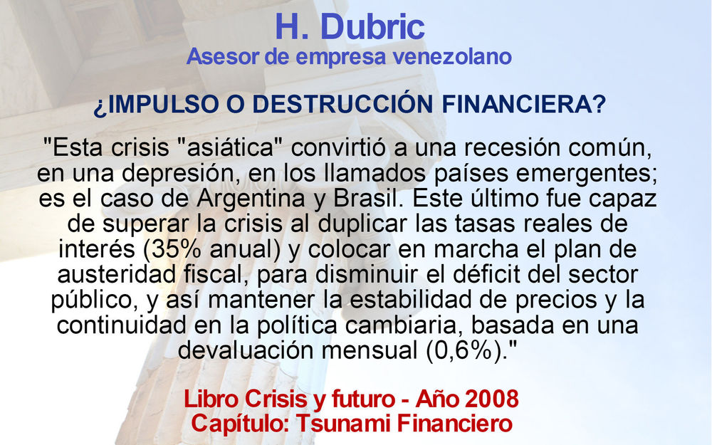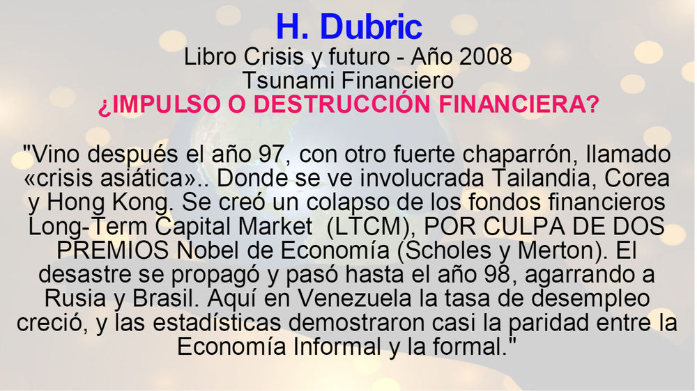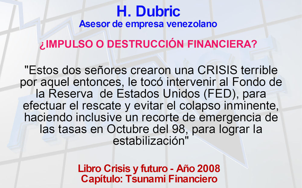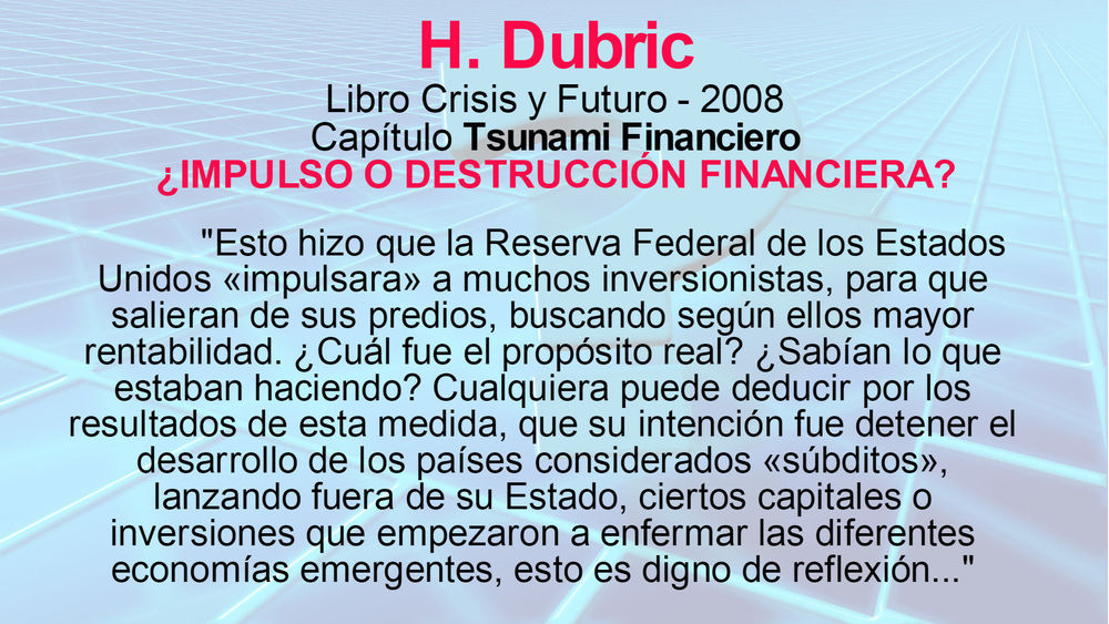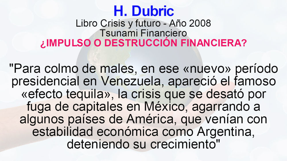 H. Dubric es un venezolano, asesor de empresas, escritor de temas gerenciales, con más de 30 años de experiencia. Ha llamado la atención en las áreas que dinamizan y entrelazan la convivencia humana, con su QUINTO SISTEMA DE DIRECCIÓN Y MANEJO DE LA LIBRE INICIATIVA, alertando que se va por el rumbo equivocado, pudiendo darle un vuelco al timón para enderezar el barco de la vida y tener por consiguiente una salida a las CRISIS.