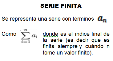 Una secuencia o cadena «finita», tiene un primer y último término bien definidos; en cambio en una serie infinita, cada uno de los términos suele obtenerse a partir de una determinada regla o fórmula.