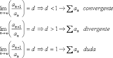 CRITERIO DE D´ALEMBERTSi L < 1, La serie ConvergeSi L > 1, L a serie DivergeSi L = 1, No es posible decir algo sobre el comportamiento de la serie. Se utilizaría el criterio de Raabe.