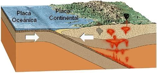 Es el borde de choque entre dos placas tectónicas. En el borde convergente una de las placas de la litosfera se hunde debajo de la otra consumiéndose en el manto. Este tipo de bordes lleva a la formación de cordilleras y está asociado con zonas de actividad volcánica originadas por la fricción de las dos placas.
