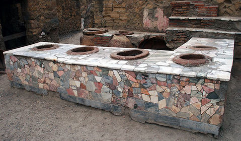 Describe three features of sanitation and water distribution in Pompeii and Herculaneum.