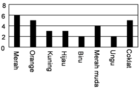Roni diperbolehkan ibunya untuk mengambil satu permen dari sebuah kantong. Dia tidak dapat melihat warna permen tersebut. Banyaknya permen dengan masing-masing warna dalam kantong tersebut ditunjukkan dalam grafik berikut. Berapa peluang Roni mengambil sebuah permen warna merah?
