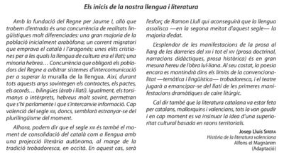 El català a Catalunya, a les Illes Balears; el valencià que pertany a l'àmbit lingüístic del català de la Comunitat Valenciana.