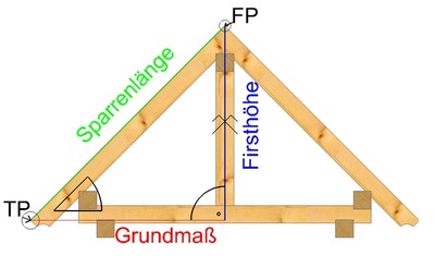 Wie berechnet man die Sparrenlänge eines Sparrenprofils wenn "Grundmaß" und "Dachneigung" gegeben sind?