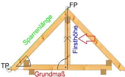 Wie errechnet man die Firsthöhe wenn "Grundmaß" und "Dachneigung" gegeben sind?
