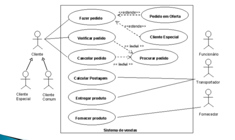 - Descrições textuais das funcionalidades de um sistema a partir da perspectiva do usuário