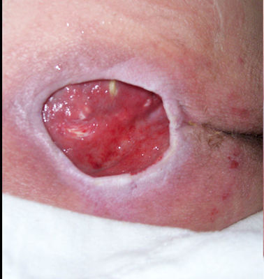 A nursing instructor is reviewing the wound healing process with a group of nursing students. They should be able to identify which of the following alterations as a wound or injury that heals by secondary intention? (Select all that apply.)