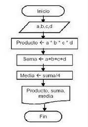 1. Inicio 2. A, B, C 3. Suma = A+B+C 4. Imprimir Suma 5. Fin