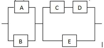 Una línea de producción de un componente electrónico se ensamblan las piezas de acuerdo con la figura. Si las confiabilidades de los componentes individuales para el mes de octubre del 2012 fueron CA=0,85, CB=0,75, CC=0,75, CD=0,90, CE=0,95 se le pide a usted como gerente de planta que determine la confiabilidad total del sistema para ese mes y que realice el análisis respectivo tomando en cuenta las partes individuales del sistema.