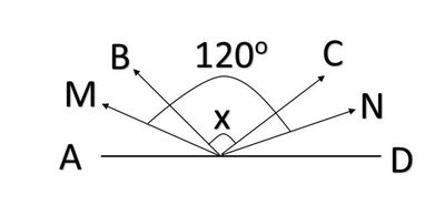 En la figura OM y ON son bisectrices de los angulos AOB y COD respectivamente. Calcular la medida del angulo BOC