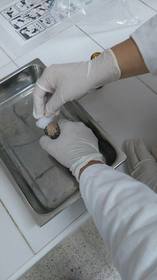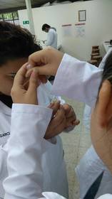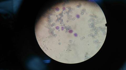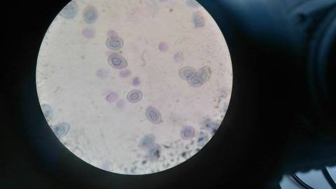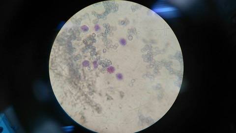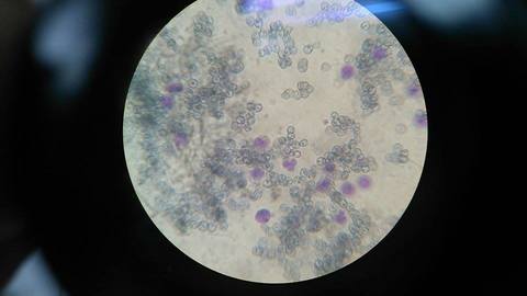 Muestra de gota de sangre (segunda capa) seca + gota de colorante Wright