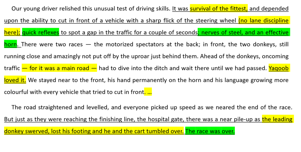 Parentheses conveys chaos, Humour conveys chaos, Emotive language conveys chaos