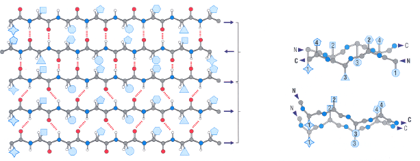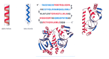 The network of regular ( secondary, primary ) structures contributes very significantly to the ( stability, conformation, size ) of the overall folded protein providing extensive networks of ( hydrogen, covalent ) bonds in which many consecutive residues are involved. All of the ( hydrogen, covalent ) bonding capability in the secondary structure of a protein is contributed from the amide nitrogen and carbonyl oxygen of the main chain peptide bond as ( donor, acceptor ) and ( acceptor, donor ) respectively.