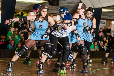 En Jam activo, dos compañeras se agarran del brazo antes de que llegue la jammer contraria. Pero, una bloqueadora contraria intenta pasar entre ellas y no puede, esto es un/a: