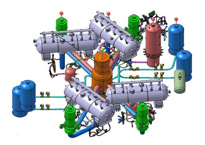 Укажите отмеченные маркерами элементы 1-го контура реактора ВВЭР, переместив мышью правильное название на оранжевый маркер.