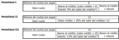 *En cualquier modalidad, el saldo del crédito cada mes será igual a la diferencia entre el saldo del crédito del mes anterior y el abono al crédito realizado en el mes.