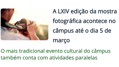 Com base nas explicações acima, selecione o título e a linha de apoio mais adequados a uma matéria de câmpus: