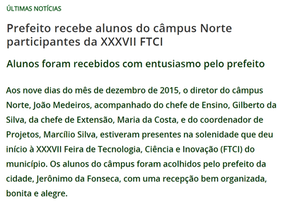 • A informação mais importante para uma matéria feita pelo instituto seria, nesse caso, a participação dos alunos. No exemplo, no entanto, eles foram colocados em segundo plano, sem que o leitor soubesse o que eles fariam no evento, qual a importância da participação deles na feira, etc. Um bom texto já traz, de início, informações relevantes e concretas sobre quem ou o que está abordando.