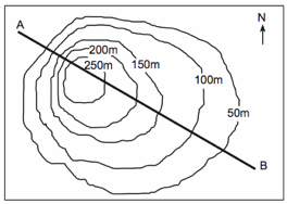 ( ) As curvas de nível da vertente do lado A do traço indicam um relevo mais íngreme do que as curvas de nível do lado B do traço.