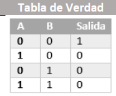 La compuerta lógica NOR, tiene la función de una compuerta lógica OR invertida.
