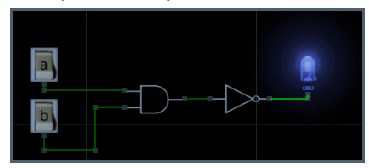 La compuerta lógica NOT, tiene la función de invertir sus valores de salida, esta sólo necesita una salida en bajo para tener una entrada en alto. En el diagrama se muestra una salida en bajo debido a que hay una entrada en alto