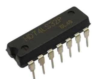 cierto o falso El CI 74LS32 cuenta con 14 pines: • Pin 7: Toma de tierra • Pin 14: Toma de voltaje CI 73H32 cuenta con 4 compuertas lógicas