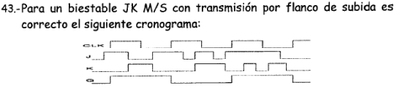 Para un biestable JK M/S con transmisión por flanco de subida es correcto el siguiente cronograma