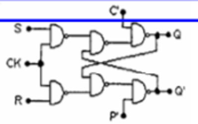 En la figura se muestra el diagrama lógico de un biestable RS NAND con sincronismo por nivel alto y entradas asíncronas de preset y clear activas a nivel bajo