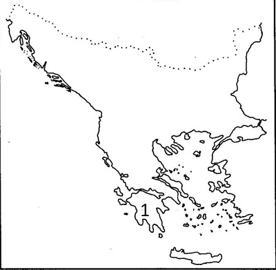 Кой полуостров е отбелязан с №1 на контурната карта?