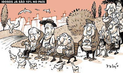 I. O advérbio "já", que indica tempo, atribui à frase o sentido de mudança; II. Entende-se pela frase da charge que a população de idosos atingiu um nível inédito no país; III. Observando a imagem, tem-se que a fila de velhinhos esperando um lugar no banco sugere o aumento de idosos no país. Está correto o que se afirma em