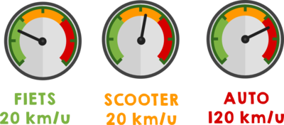 Een fiets is snel, een scooter is een fiets, maar een auto is .