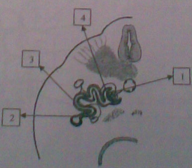 I. Los números 1, 2, 3, 4 corresponden a bolsas faringeas y sus derivados.