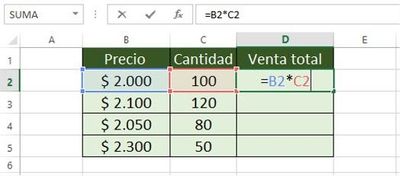 En relación a la fórmula de la celda D2, podemos afirmar que: