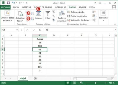Seleccionar los datos desde la celda C1 hasta la C10 y pulsar el botón "A"
