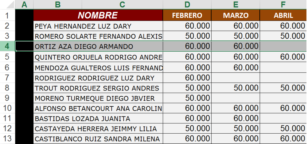 Encabezados de Fila son las "letras" que representan las diferentes filas de Excel