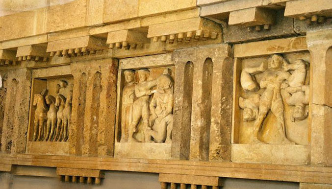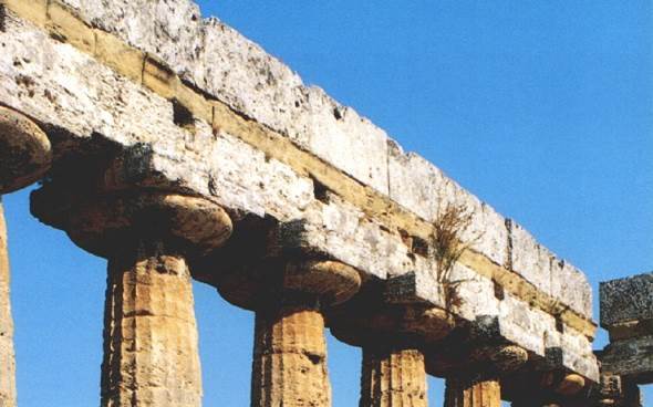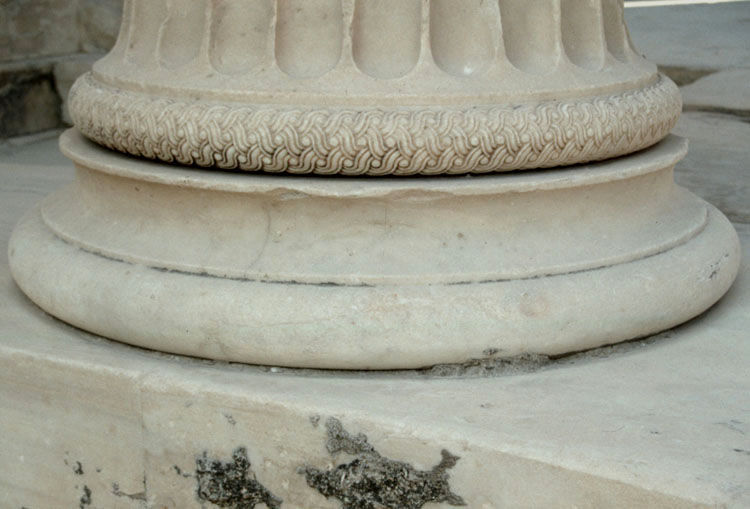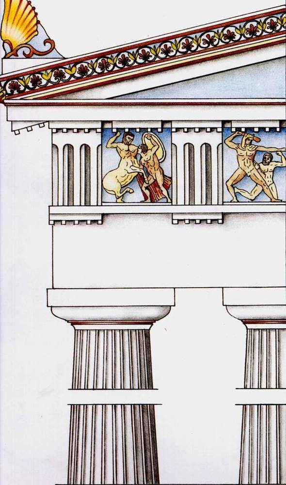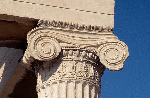 El orden dórico apareció en la época . El jónico, en la y el corintio en la . Las primeras combinaciones de órdenes en Grecia datan del siglo El es el principal ejemplo del orden dórico; el templo de , también emplazado en la de Atenas, es de orden jónico. En el , único templo griego de tres pórticos, dos son de orden , mientras que en el tercero, el pórtico Sur, las columnas son .