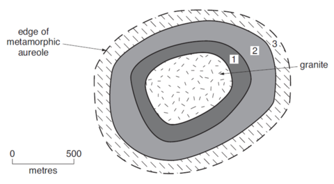 Describe the rock and index minerals found in area 3.