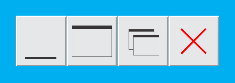 Restaurar, Mover, Tamaño, Minimizar, Maximizar y ( cerrar, Abrir, Reiniciar ).