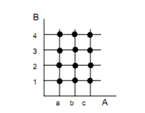 Sea los conjuntos A={a,b,c} y B={1,2,3,4} el siguiente grafico representa el producto cartesiano: