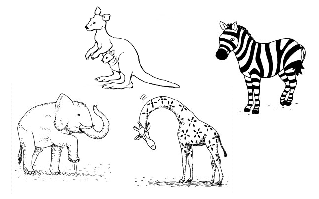 Zapraszam cię dziś do naszej krainy, w której nie ma zła, a panuje dobro i przyjaźń. Poznaj moje królestwo jakie stworzyłem z moimi przyjaciółmi. To królestwo powstało dzięki przyjaźni niemiecko-polskiej. Pewnego razu w Europie odbywał się pokaz zwierząt cyrkowych. Ja i Henx mój przyjaciel słoń byliśmy na konkursie, wtedy też poznaliśmy inne zwierzęta, które dziś są w naszym królestwie. Ich komme aus Deutschland. Jestem królem w naszym królestwie, wszyscy zwą mnie Marjan, a jestem ❌. ❌ są królami w świecie zwierząt. Mój przyjaciel Henx jest słoniem. ❌ to jedno z największych zwierząt w naszym królestwie, nawet ja czuję respekt przed nim. W cyrku poznaliśmy świetną kangurzycę, Hiki. ❌ to zwierzęta, które potrafią nosić swoje dzieci w brzuchu, z którego wystaje tylko głowa. Ciekawie prawda? My poznaliśmy Hiki i jej przyjaciół gdy jej dziecko się zgubiło. Wówczas pomagali nam go szukać Tuf, mój nowy sprzymierzeńca, ❌. ❌ to waleczne zwierzęta, ale mają piękną prążkowaną sierść, w cyrkach zamykane są w dużych klatkach, czego nie lubią. Dien dzięki swojej długiej szyi mogła z daleka wypatrzeć zaginione zwierzątko. Dien to ❌. ❌ są wysokie i mają długą szyję. W poszukiwanie zaangażowali się również Bin, Huk i Tako oraz Motty. Bin to świetny przyjaciel. Bin ma biało czarną sierść i jest bardzo przyjacielski. Bin to ❌. Huk ciągle powtarzał, że szukamy dziecka Hiki. Huk to ❌. ❌ lubią powtarzać to co się do nich mówi. Tako też chciał nam pomóc, choć strasznie wolno pełza. Tako to ❌. ❌ są zazwyczaj niebezpieczne, ale nasz Tako jest niegroźny. Nie możemy zapomnieć o Motty, on też nam bardzo chętnie pomagał. Swoimi płetwami odsłaniał każdą kurtynę. Motty to ❌. On też był na Madagaskarze, ale woli zostać z nami. Jak myślicie kto odnalazł dziecko Hiki? Zgadujcie!