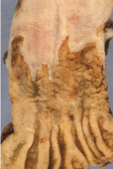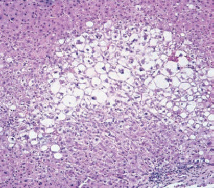 demonstrates alcoholic hepatitis with Mallory bodies. These