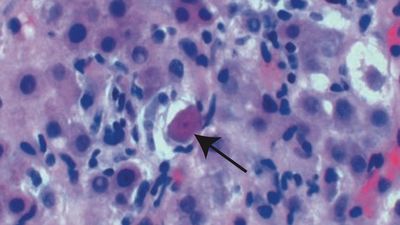 phosphatase, and bilirubin are all elevated. A liver biopsy