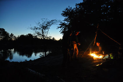 They camped in the river because they missed the bus, and they found a place where Lennie should go if he would be in trouble