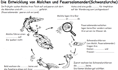 Schwanzlurche - Fülle die durch Ziehen der Antworten die Lücken im Bild aus.