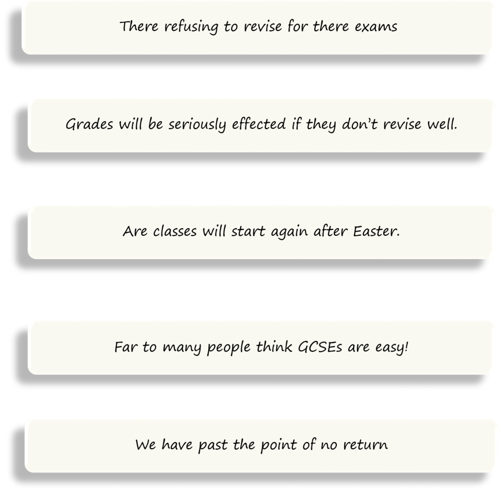 Lack of agreement is another very common error that is seen in candidates' writing and is particularly common in the writing of learners for whom English is an additional language.