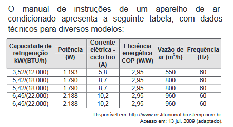 Para cada aparelho elétrico existe um valor de potência associado. Valores típicos de potências para alguns aparelhos elétricos são apresentados no quadro seguinte:
